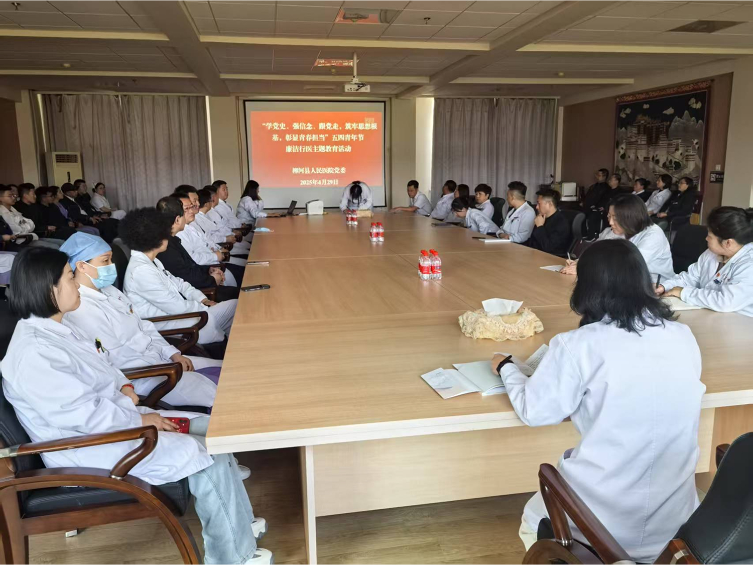 为传承红色基因,弘扬五四精神,激励青年立足岗位创新实干,4月29日下午,医院党委组织全体党员、青年骨干、团员在小会议室组织开展了廉洁行医主题教育活动。