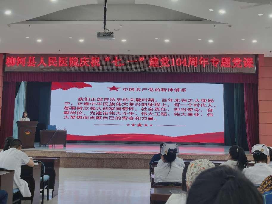 为深入贯彻中央八项规定精神学习教育工作,弘扬党的优良传统,值此庆“七.一”建党104周年之际,6月27日下午,柳河县人民医院党委组织全体党员、职工在多功能厅组织开展了集中专题党课学习。全程由刘勇书记亲自授课。