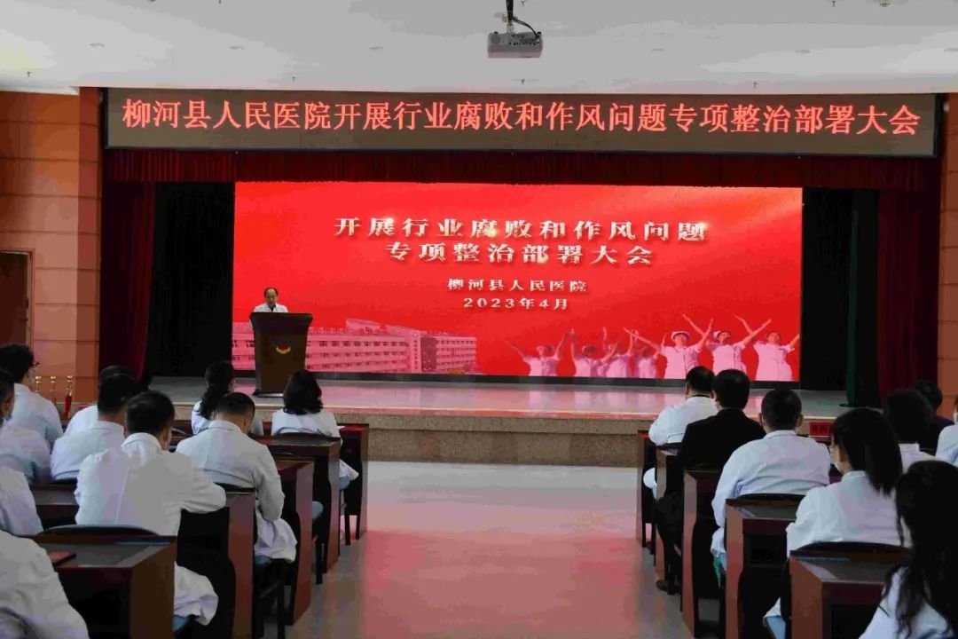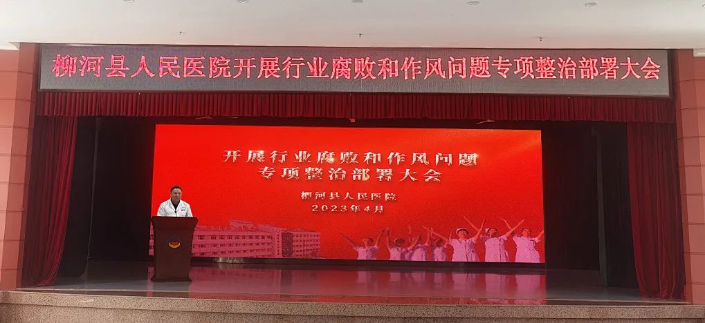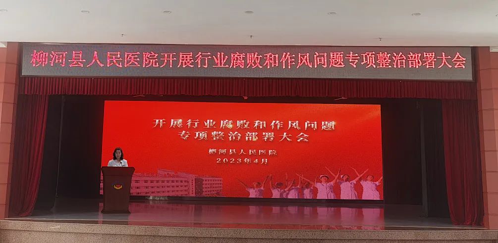 2023年4月21日下午14时,柳河县人民医院召开行业腐败和作风问题专项整治部署大会,会议由副院长李树贵主持,全院职工参加会议。
